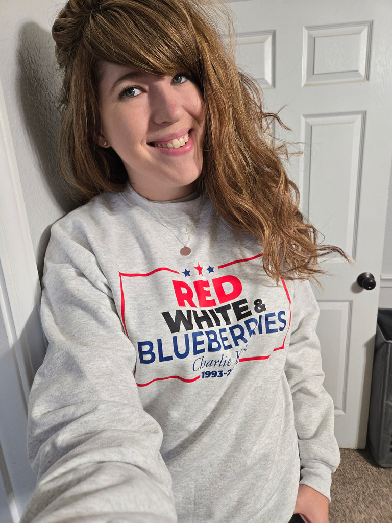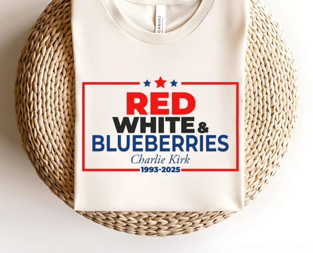 Show your support for Charlie Kirk and his blueberry budget with RWB. Choose between a crew neck T-shirt or hoodie, both featuring a vibrant print of red, white, and blueberries. Stay stylish while making a statement.